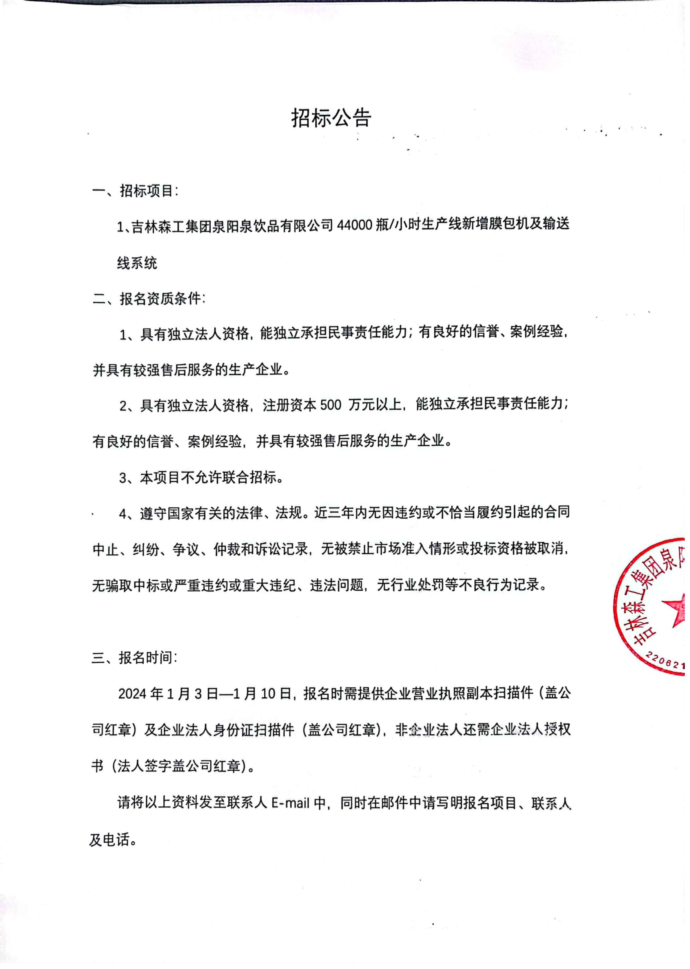 2024年度部分產(chǎn)品干線運輸服務招標公告